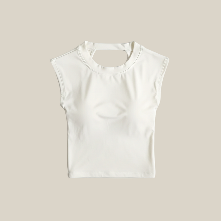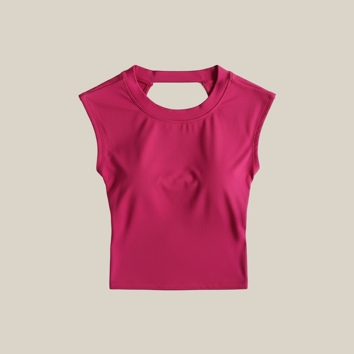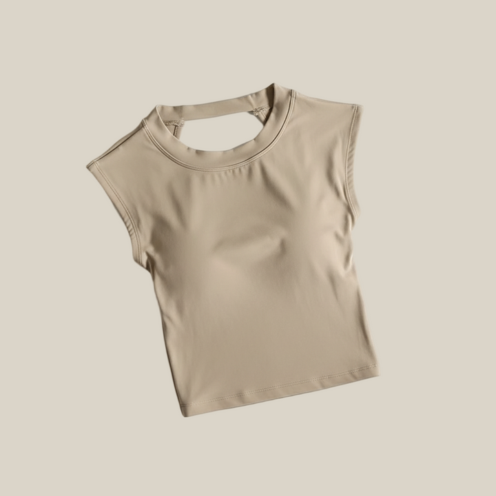 חולצת האימון לכל מי שאוהבת לשלב נוחות עם סטייל! חולצת אימון קצרה, מחטבת ונושמת, עם גב חשוף ועיצוב אלגנטי שמעניק מראה נקי ומרשים בכל אימון.