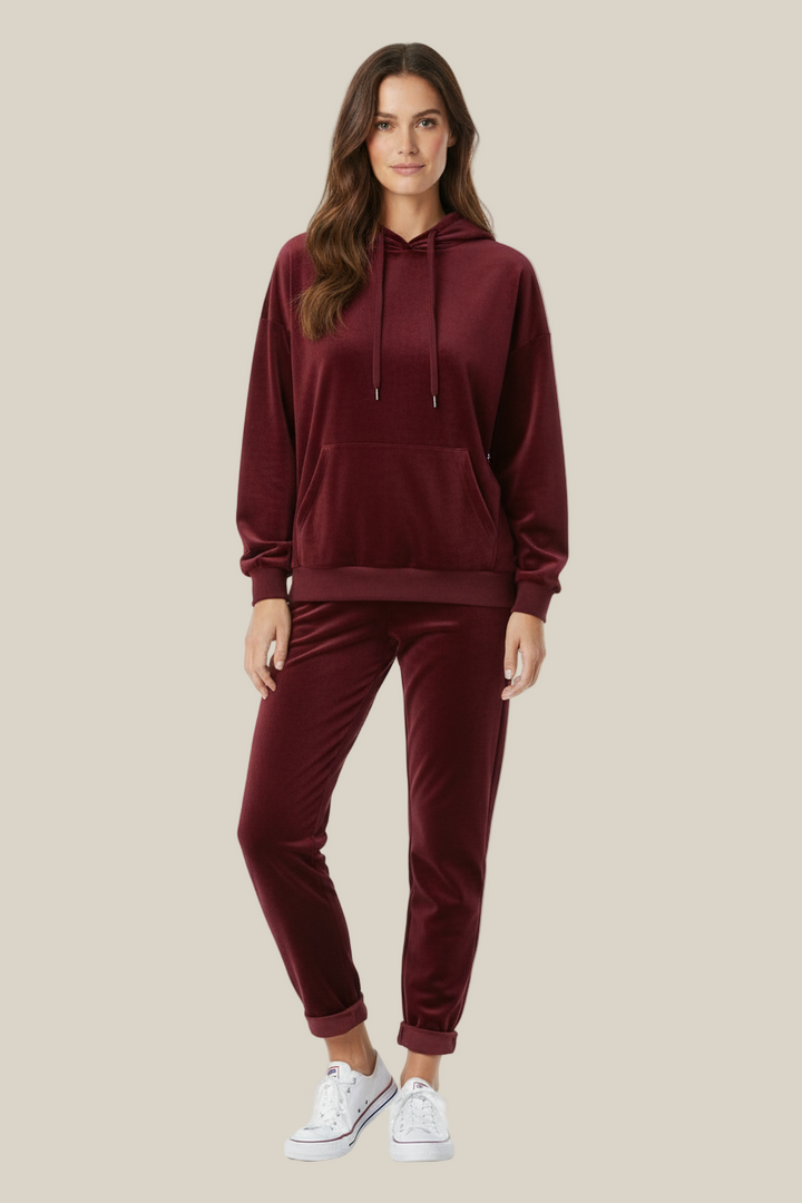 סט קז׳ואלי לנשים, עשוי בד פליז רך ונעים, הכולל סווטשירט פולי־אובר ומכנסי סווצ׳ר תואמים. מושלם ליציאה, לאימון קל, לנסיעות או פשוט ליום נעים בבית.