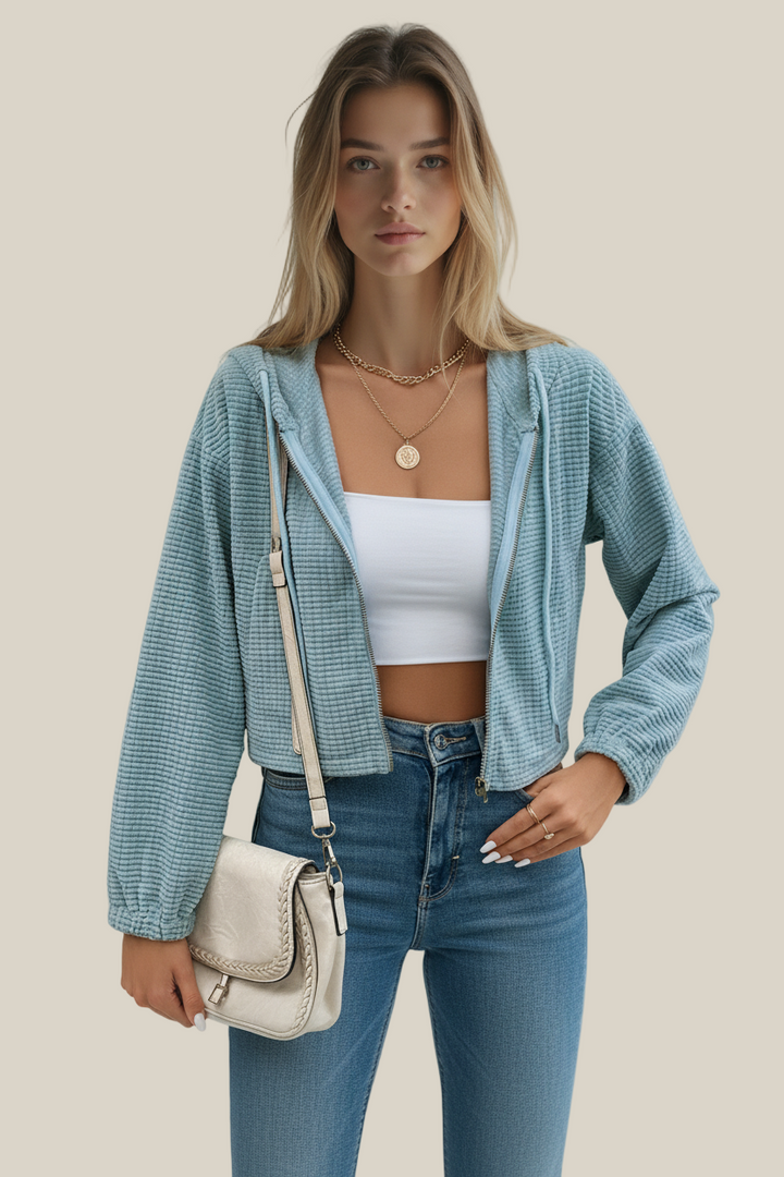 ✨ A sporty-casual jacket in a solid color, with a fashionable hood and a combined collar, which gives you a fresh and comfortable look for the transitional and winter seasons.