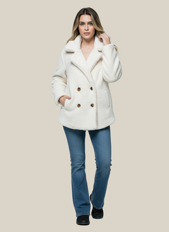 ❄️ Embrace winter in style with this women's Sherpa Fleece Teddy Coat - the perfect choice for a combination of warmth, comfort and fashion. The double-breasted lapel design gives an elegant and enveloping look, while the soft and cozy fabric creates a feeling of pampering warmth even on the coldest days.