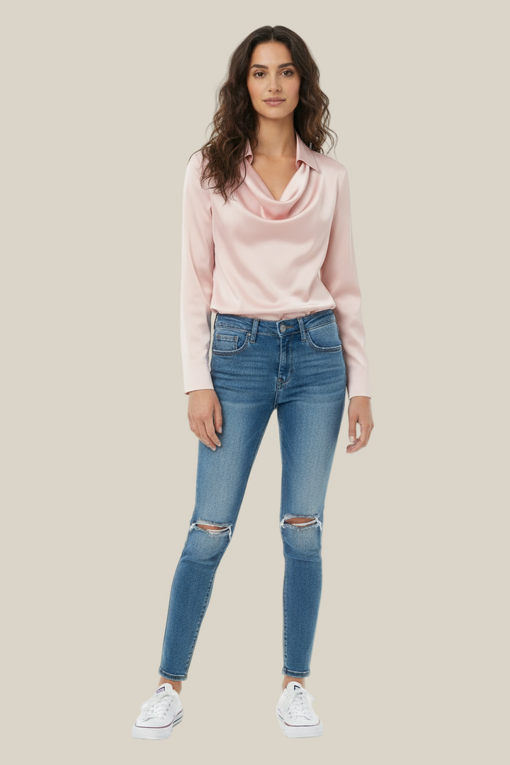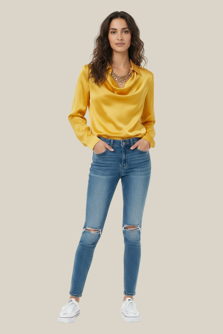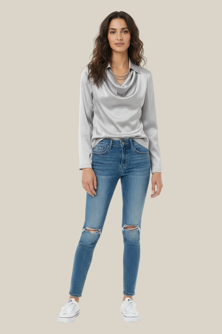 הכניסי סטייל אלגנטי ומוקפד למלתחה שלך עם חולצת הסאטן החדשה לעונת הסתיו.