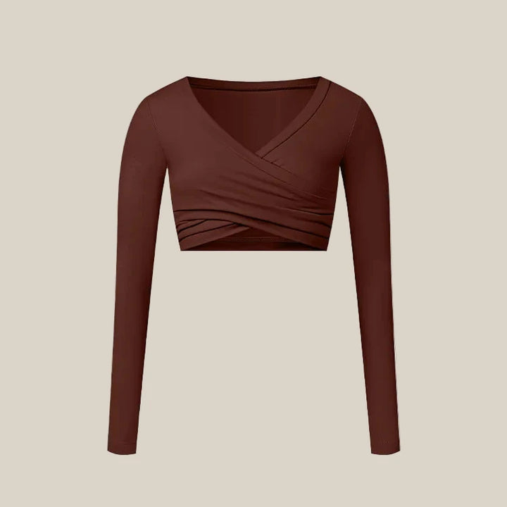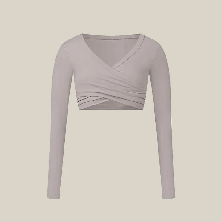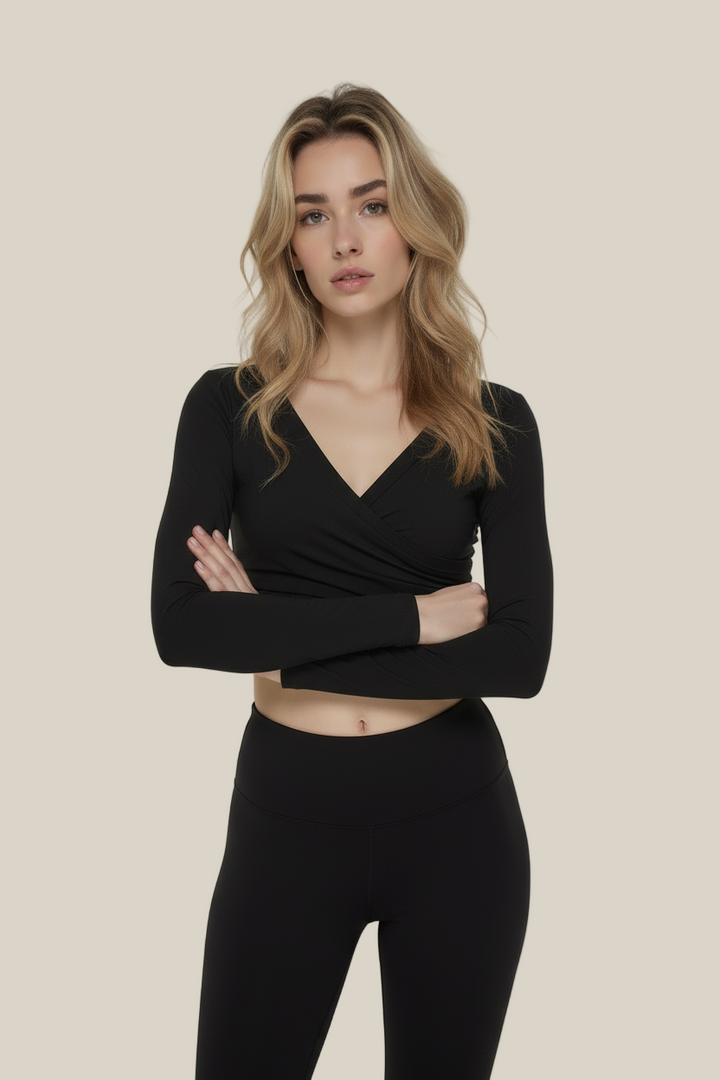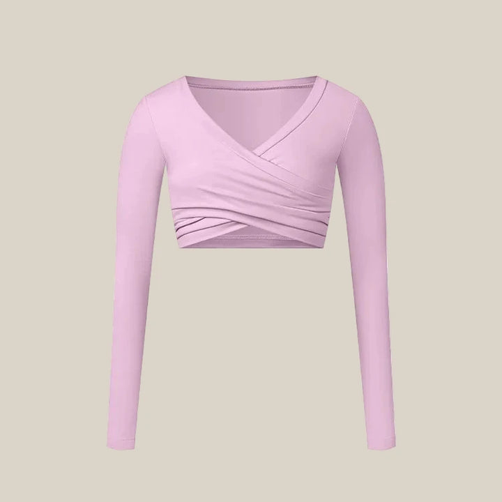 חולצת ספורט לנשים בגזרת קרופ עם שרוול ארוך, עשויה מבד נושם המתייבש במהירות ושומר על תחושת רעננות ונוחות גם בזמן פעילות אינטנסיבית.