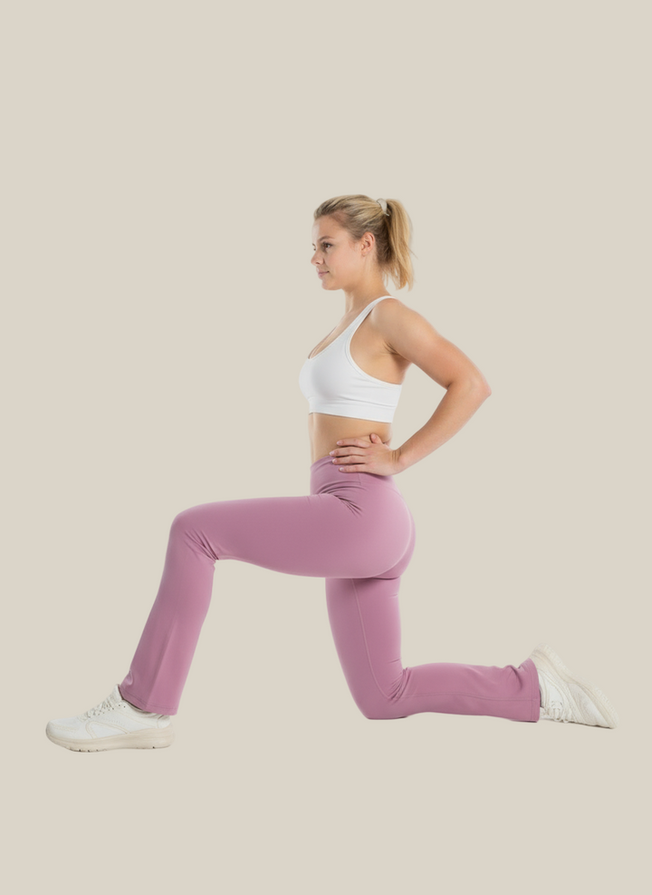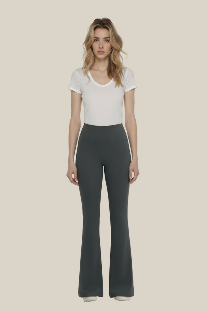 מכנסי אימון לנשים בגזרה מתרחבת (Bell Bottom), עם מותן גבוהה המחטבת את הגוף ומעצבת את המותניים והישבן.